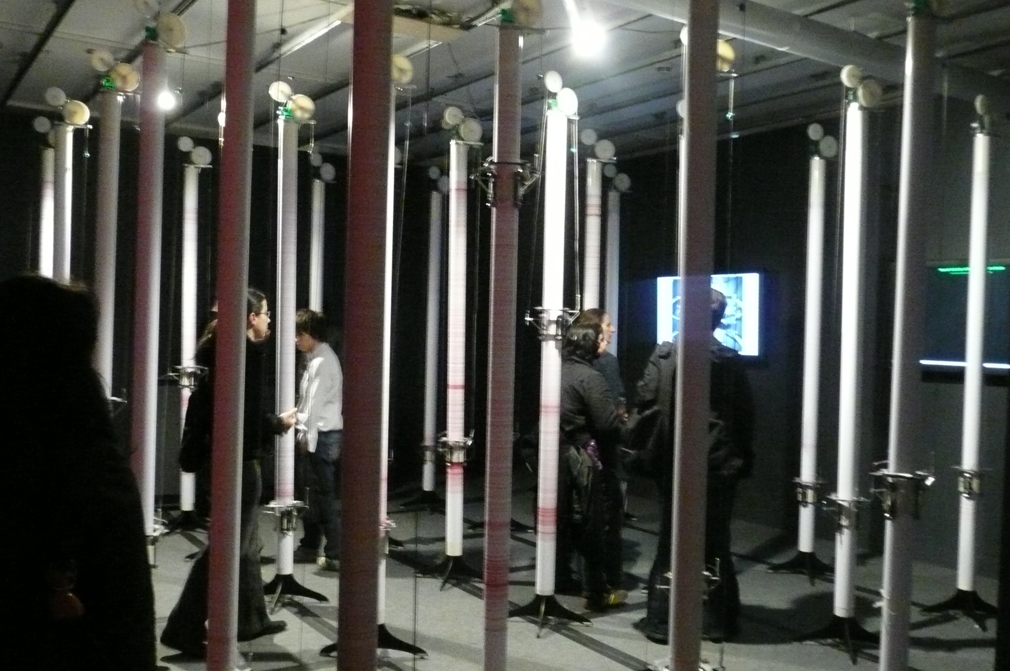 Overheard someone in the exhibition saying “I don’t like it when its so scientific, I prefer it when its just art” (ergh?) and I think it is quite hard to pitch this sort of show at the right level; some of the exhibits were quite complex. Silent Barrage is presented as a room full of robotic poles connected to a dish of cultured nerve cells in a lab in the USA (Dr Steve Potter lab Georgia, Atlanta). It took a bit of working out, but there were guides there to enthusiastically explain it all and it turns out that your movements around the poles were being transmitted as a signal to the nerve cells that in turn responded by sending impulses to the robots whirring up and down the poles. The lab researches epilepsy and neural dysfunction and this installation is a fascinating attempt to put an artistic face to such a complex subject.